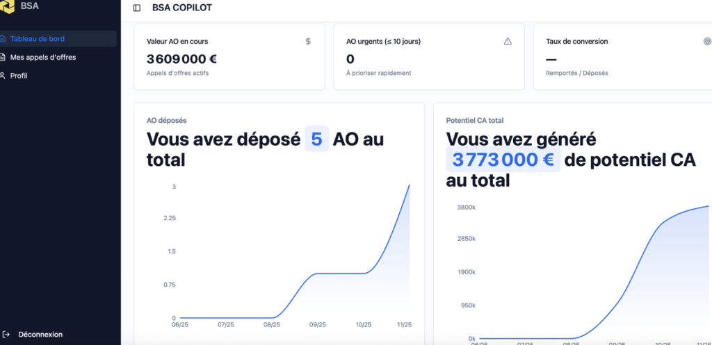 “BSA transforme chaque opportunité identifiée en appel d’offres qualifié, réponse automatisée et deal remporté.”